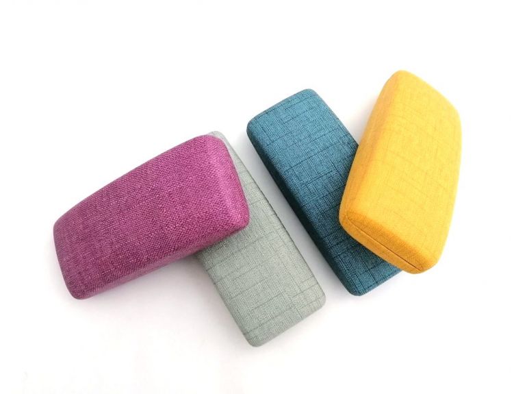 Astuccio rigido con anima in plastica ed esterno rivestito in tessuto a trama larga con motivo a righe orizzontali – 4 varianti di colore